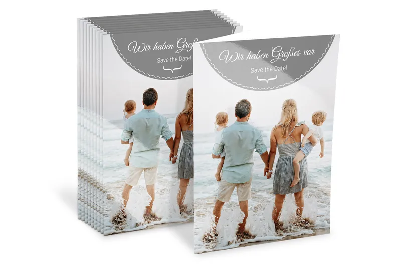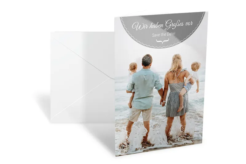 Persönlich ist es doch einfach am Schönsten - zeig Deinen Liebsten, dass sie Dir mehr wert sind als ein elektronischer Gruß und versende Deine ganz persönliche Botschaft mit unserer Klappkarte. Wähle aus vielen modernen Designs ein Layout zu Themen wie Hochzeit, Baby, Geburtstag, Ostern, Weihnachten und vielen weiteren aus oder gestalte Deine ganz individuelle Grußkarte. Verschiedene Schriftarten, Cliparts, Hintergründe und Bildrahmen vereinfachen Dir die Gestaltung deines Meisterstücks. Wer freut sich nicht über einen handgeschriebenen Gruß? Zwei kleine Tipps: Die Klappkarte hoch eignet sich auch ideal als Menükarte und ist gegen Aufpreis auch mit edlem Strukturpapier erhältlich. Alle Details zu Deiner Klappkarte hoch: Kartenformat geschlossen: 10x14 cm Kartenformat offen: 20x14 cm Auflösung geschlossenes Format: 1000 x 1400 Pixel (optimal), 296 x 414 Pixel (minimal) Auflösung offenes Format: 2000 x 1400 Pixel (optimal), 591 x 414 Pixel (minimal) Druckverfahren: Premium Digitaldrucktechnologie Material: Bilderdruckpapier auf der Außenseite glanzcellophaniert, Strukturpapier gegen Aufpreis erhältlich Hinweis: Briefumschlag inklusive. Die Klappkarte wird nicht gefalzt Tipp: 10er Set einmal gestalten, 10 Karten erhalten! Und das Beste: Du sparst noch bis zu 30%!