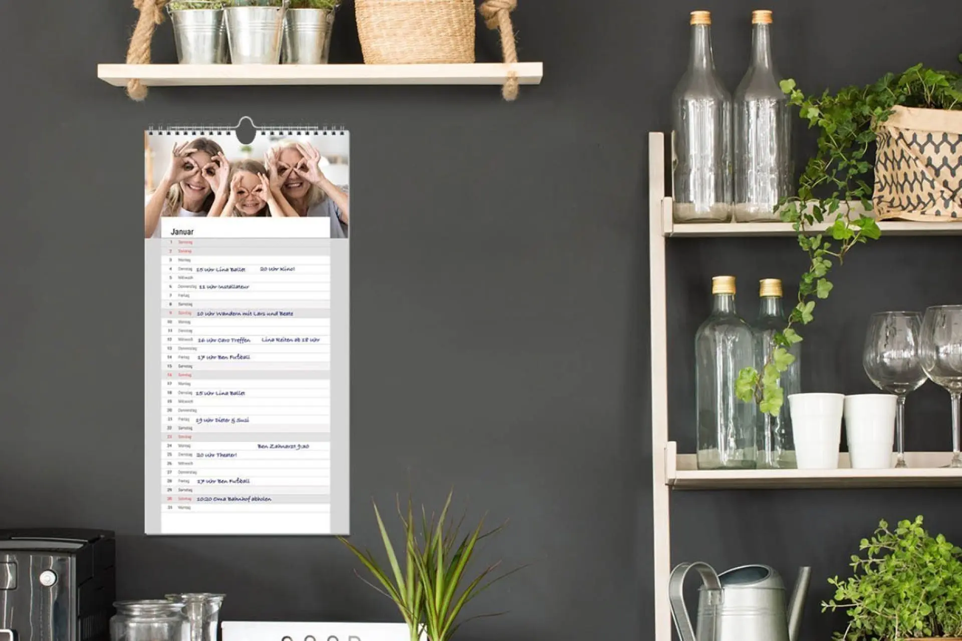 Der klassische Foto-Wandkalender passt in jedes Büro oder in jede Küche. Er kann schnell gestaltet werden und ist durch die Fotos ein sehr persönliches Geschenk. Die möglichen Formate gehen vom A5 bis zum A2-Format hoch, zudem sind noch einige tolle quadratische Abmessungen wählbar. Natürlich wächst mit dem Format auch der 👁 "Hinguck"-Faktor. Bei einem Wandkalender mit großem Kalendarium haben Sie Ihre Termine immer im Blick. Der Wandkalender mit einem kleinem Kalendarium lässt Ihnen mehr Platz für die Gestaltung und Ihre Fotos.