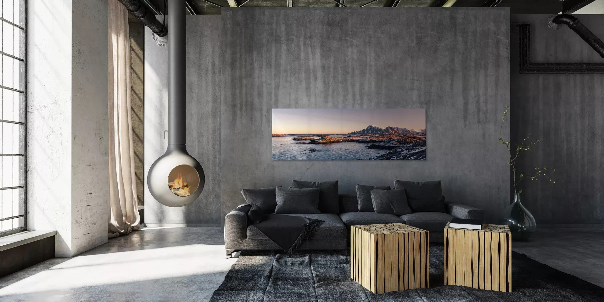 Wir liefern im Standard eine rückseitig angebrachte Standardaufhängung mit. Sie können sich aber auch für einen rückseitig angebrachten Alu-Rahmen entscheiden. Dieser kann sehr gut zum Aufhängen genutzt werden. Zudem stabilisiert er das Bild und schafft Abstand zur Wand, so dass das Bild leicht schwebend erscheint. Lichtinstallationen (LEDs) können dann gut hinter dem Bild angebracht werden.